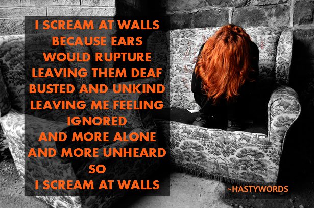 “I scream at walls because they can’t confirm the lies inside my head.” β€
