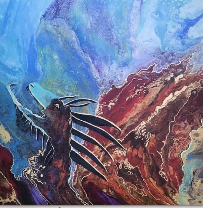 I kept associating the red with fire and eventually a Fire Dragon was born. I love dragons and I really love how this painting turned out.